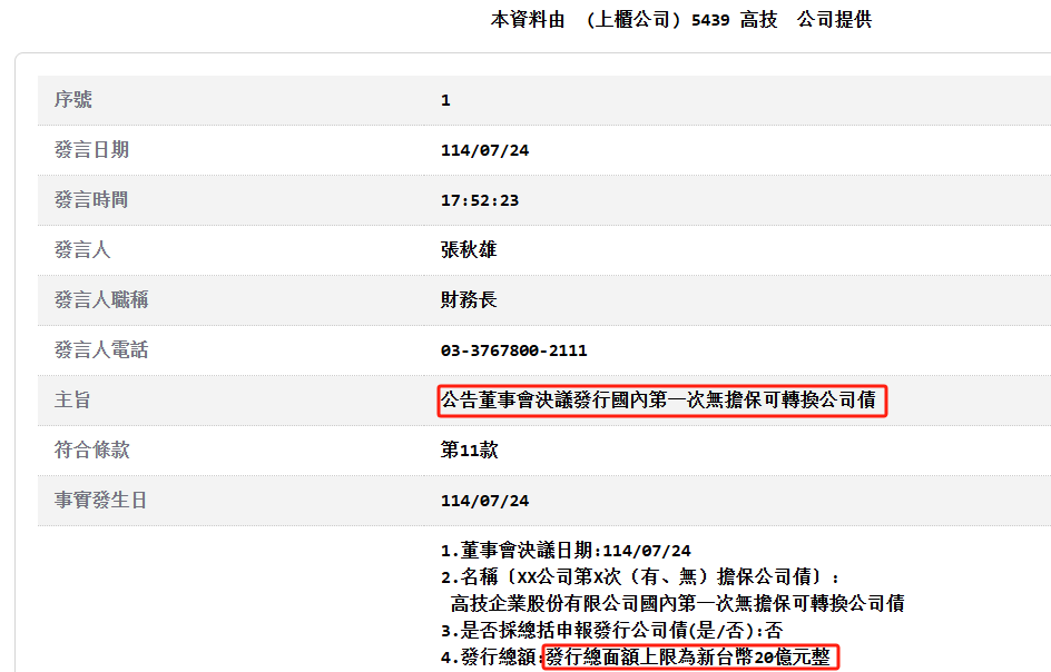 7月24日,台资PCB厂商高技(5439-TW)发布公告,决定通过发行无担保公司债筹集资金,发债上限为20亿新台币(约合4.87亿人民币),资金主要用于扩建厂房及购置设备。