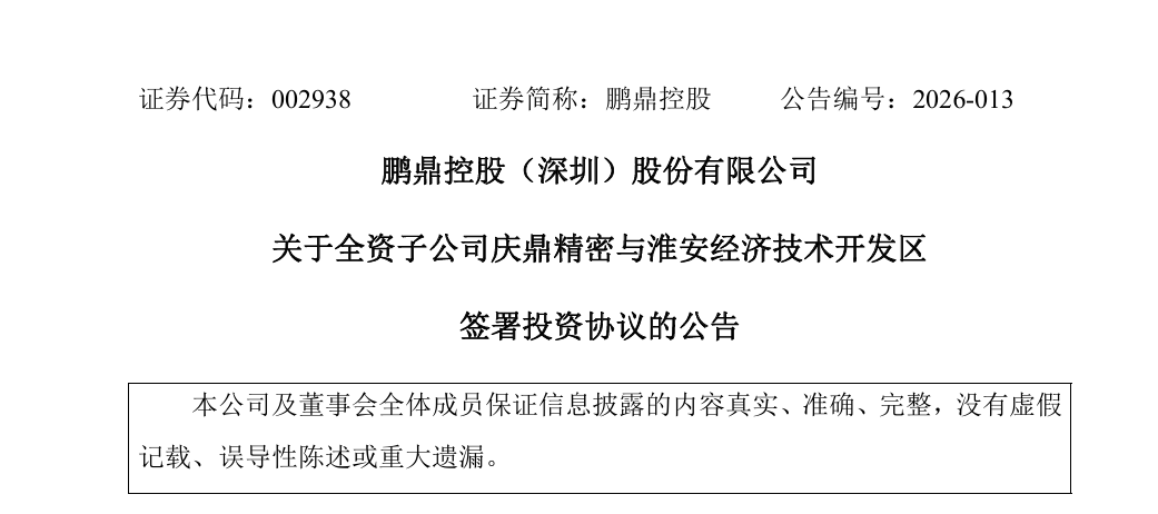鹏鼎控股表示,本次投资是公司顺应AI技术发展趋势、推进高端PCB产能布局的重要举措,有助于扩大经营规模、推动产品升级并提升市场竞争力。项目资金将以公司自有资金及自筹资金投入,对公司财务状况和日常经营不会产生重大不利影响。